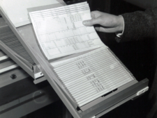 1959 製品・商品東京都内でバイデキスを大量納入神武景気を上回る好況となった1959(昭和34)年の年末には、東京都が国民健康保険業務を開始することが決まった。これに伴い都内の各特別区では被保険者台帳・給付記録・賦課徴収簿・索引簿などの台帳が必要… -