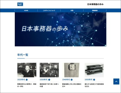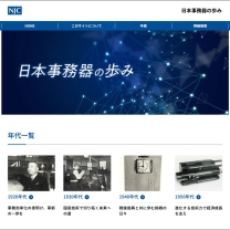 経営・事業 100周年を記念して社史Webサイト「日本事務器の歩み」を公開 2025(令和7)年2月 社外向けには100年史を制作し、Webサイトと冊子の両方で公開した。2月に公開した社史Webサイト「日本事務器の歩み」では、当社の歴史や事業などを多くの方に知っていただけるよう、これまで取り扱ってきた商材・サービスの紹介だけでなく、当社が乗り越えてきた困難や挑戦などといった、100年にわたる当社の変遷をご覧いただける内容にした。なお、冊子版の『日本事務器100年史』は、手に取れる形式として6月に発刊した。 ブランド図版